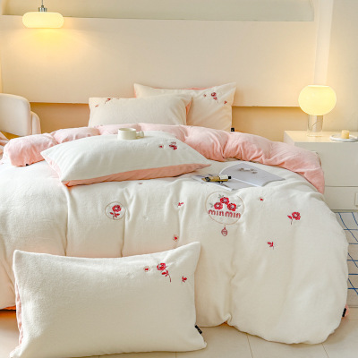 秋冬加厚卡通A类绣花多莉羊绒四件套保暖牛奶绒床单被套1