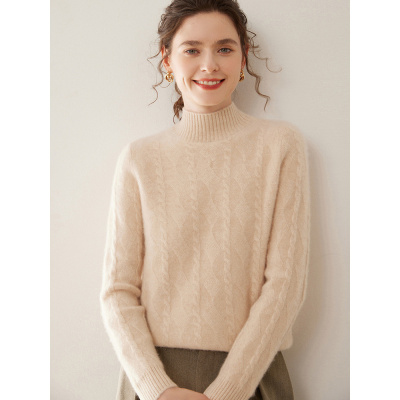 新款半高领加厚羊绒衫女士秋冬款提花内搭显瘦毛衣纯色针织衫上衣