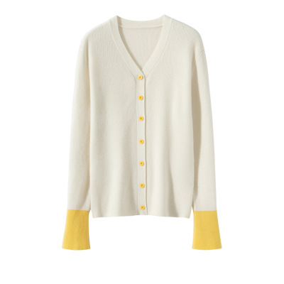 女士山羊绒开衫撞色袖清新甜美温柔风V字领单排扣春夏季新款外套