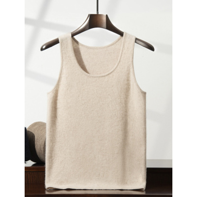 U字领十二针平面山羊绒男士针织吊带背心无袖内搭舒适亲肤套头