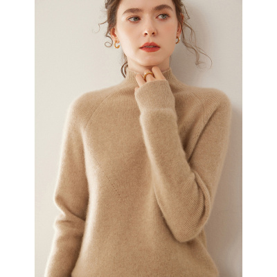 半高领插肩袖元宝针山羊绒女长袖宽松保暖毛衣时尚百搭针织打底衫