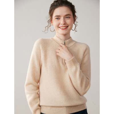 秋冬半拉链立领山羊绒打底衫女套头百搭舒适保暖内搭针织打底外穿
