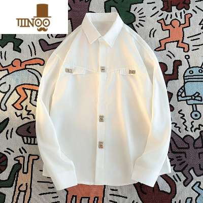 YANXU日系白色复古印花衬衫男士潮牌长袖休闲衬衣外套百搭上衣服