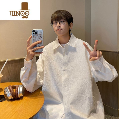 YANXU白色长袖衬衫男士秋季潮牌提花设计痞帅寸衣潮流日系大码男装外套