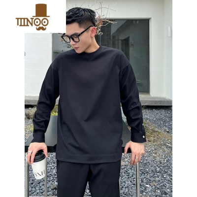 YANXU2023纯色卫衣男新款帅气圆领衬衫袖上衣青年休闲打底衫潮