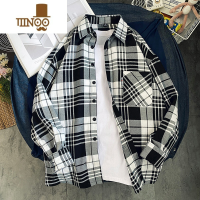 YANXU苏格兰格子衬衫男少年感穿搭日系长袖衬衣美式复古巴洛克情侣外套