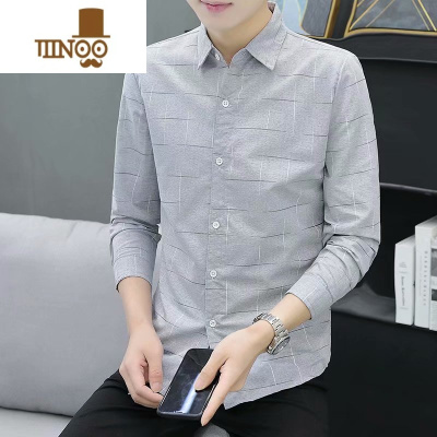 YANXU薄款长袖男士衬衫韩版潮流修身衬衣青年休闲寸衫百搭上衣服
