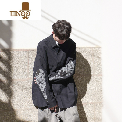 YANXUE023秋男士长袖衬衫日系复古腰果花印外套宽松气质chic学生衬衣潮