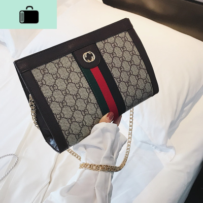 网红包包女复古链条大包包女2020新款百搭杀手包韩版单肩包斜挎包NEW LAKE 咖色女斜挎包
