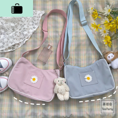 茶话会日系ins花朵斜跨包包女休闲百搭学生古着感少女单肩腋下包NEW LAKE女士单肩包