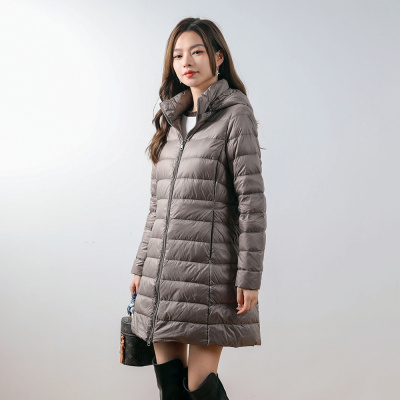 2023韩版纯色面包服女中长款简约加厚连帽运动宽松羽绒服