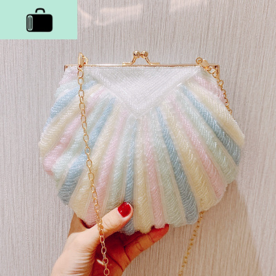 仙女包包2019新款斜挎包小众少女手工贝壳宴会晚宴手拿包链条单肩NEW LAKE 米彩色女手包