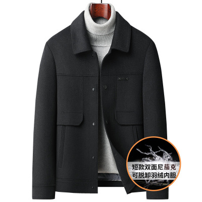 潮流青年秋冬羽绒脱卸内胆双面呢羊毛大衣男士短款双面呢羊毛外套
