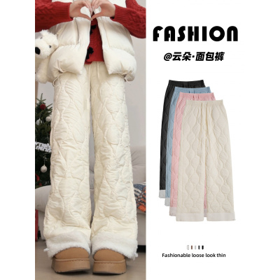 加厚棉裤女外穿冬加绒东北寒保暖直筒摇粒绒羊毛防风阔腿裤子