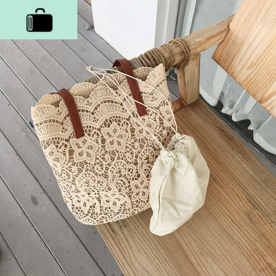 沙滩袋网红镂空手提包女2020新款夏季韩版度假旅行休闲托特单肩包NEW LAKE女斜挎包