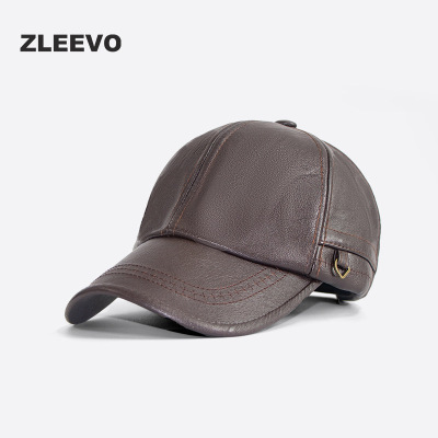 慕熙威尔 真皮帽子男士秋冬季保暖头层羊皮鸭舌帽平顶帽户外休闲防风羊皮贝雷帽中老年四季皮帽子