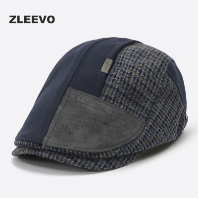 文艺复古前进帽秋冬画家帽休闲男女士拼接英伦鸭舌帽子