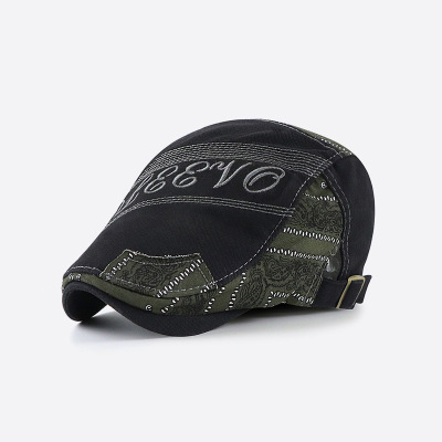 新款鸭舌帽子字母刺绣贝雷帽拼接民族风男女士前进帽厂家