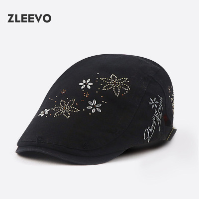 / 水洗贴钻前进帽时尚做旧鸭舌帽子防嗮遮阳贝雷帽