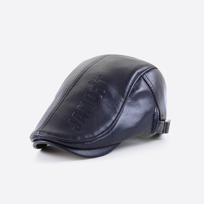 秋冬鸭舌帽男士中年户外保暖帽子老年百搭前进贝雷帽PU皮