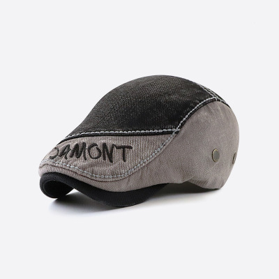 春秋休闲贝雷帽女文艺复古前进帽男拼接鸭舌帽子时尚百搭
