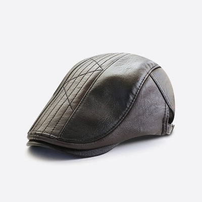 秋冬季新款PU贝雷帽百搭前进帽男士休闲皮质鸭舌帽欧美风