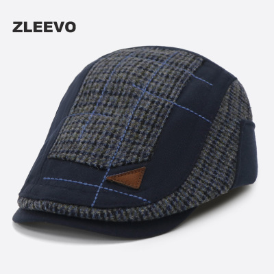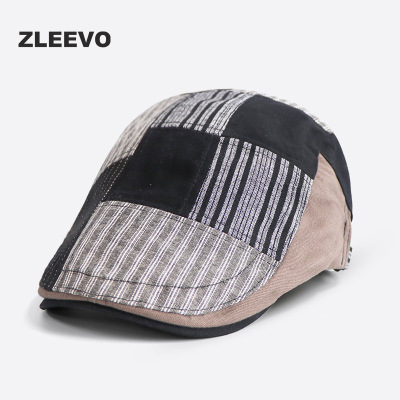 春秋季拼接前进帽英伦复古男女士贝雷帽青中老年鸭舌帽子