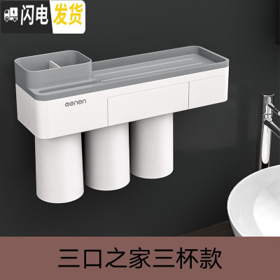 三维工匠牙刷置物架免打孔漱口杯套装卫生间牙具牙缸壁挂式刷牙挂墙牙杯架 [三口之家]灰3杯款牙刷架/牙具座