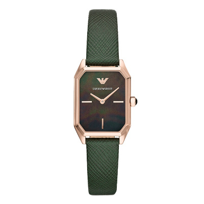 阿玛尼(EMPORIO.ARMANI)手表 时尚方盘休闲皮带石英表女士腕表方形小绿表AR11149 送女友 七夕礼物