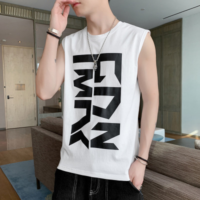 夏季新款无袖T恤男个性潮流运动坎肩休闲纯棉印花潮牌上衣男