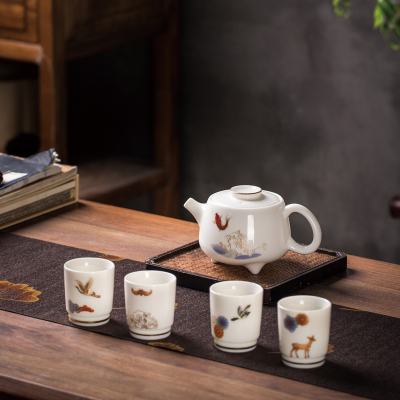 三维工匠陶瓷旅行功夫茶具套装快客一壶二杯便携式随身小套单人泡茶杯定制 珐琅彩同心杯-明黄+茶叶罐送防烫胶套