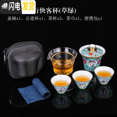 三维工匠珐琅彩快客杯旅行便携式功夫茶具套装一壶三杯随身户外泡茶杯 珐琅彩快客一壶三杯(草绿)