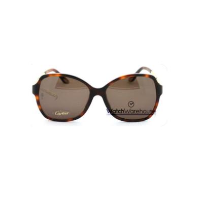 Cartier女士复古棕色方框太阳镜有色镜片时尚镜腿标识
