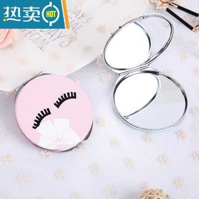 敬平时尚pu面镜韩式创意女士随身化妆梳妆镜迷你便携折叠小镜子双面镜便携式用镜 粉底笑脸
