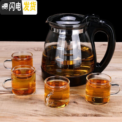 三维工匠304不锈钢内胆茶壶套装玻璃茶具耐热可高温防爆冲茶器过滤茶壶 1800单壶+4把杯304不锈钢内胆