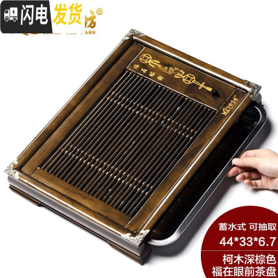 三维工匠 实木茶盘茶海茶台托盘茶托 抽屉式两用功夫茶具茶盘 实木 9柯木福在眼前(不锈钢底)单盘
