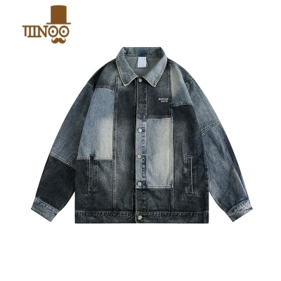 YANXU美式复古渐变水洗牛仔外套男高街潮牌宽松工装休闲夹克衣服