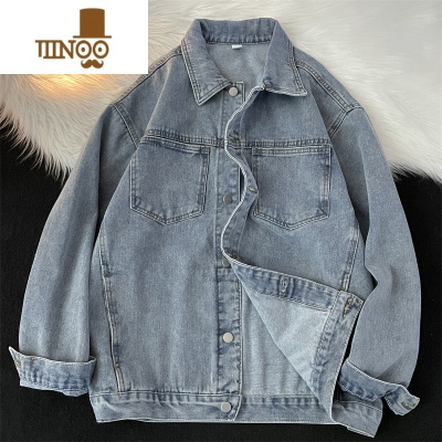 YANXUSF/春新款韩风时髦男生蓝色牛仔衣外套复古水洗短款垫肩夹克上衣