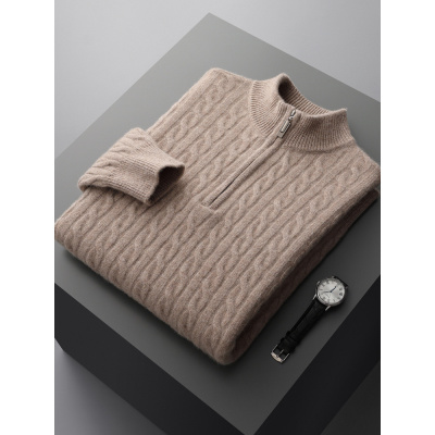 半拉链山羊绒衫男士宽松大码半高领套头毛衣25新款保暖针织羊毛衫
