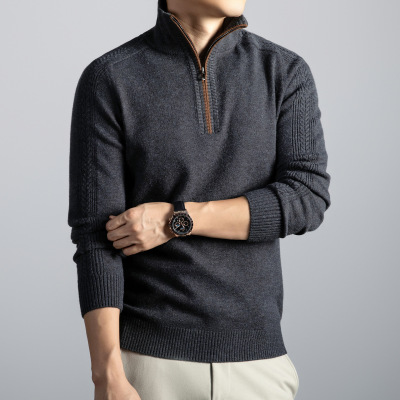 半拉链提花毛衣男加厚550克2025秋冬季新款半高领打底男士羊毛衫