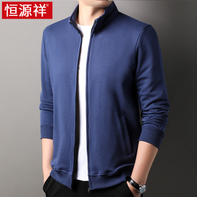 恒源祥纯棉开衫外套男2024新款春秋装立领半高领外穿男士卫衣