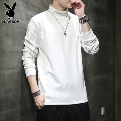 花花公子半高领长袖T恤男士德绒上衣秋季潮流休闲打底T恤衫男款