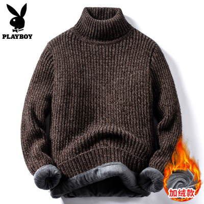 花花公子高领毛衣男士加绒加厚上衣服潮流宽松冬季保暖内搭针织衫