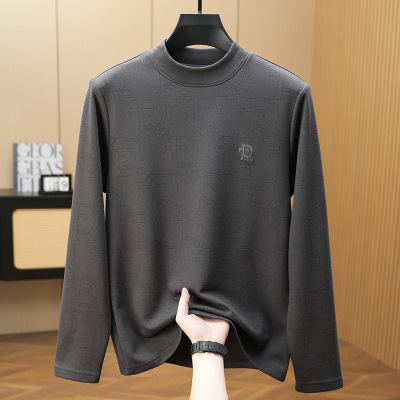 半高领德绒打底衫男秋冬新款男士长袖羊毛桑蚕丝烧花卫衣男