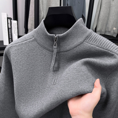 莱赛尔半高领拉链加厚毛衣男秋冬季高品质保暖打底男士针织衫