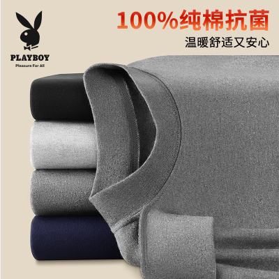 花花公子保暖内衣男款纯棉男士中高领秋衣秋裤套装秋冬季全棉毛衫