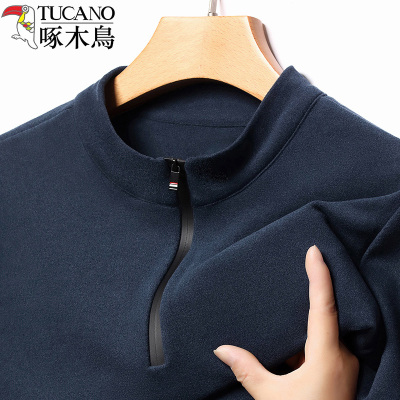 啄木鸟秋季新款中年男士爸爸装双面德绒打底衫拉链半高领长袖T恤