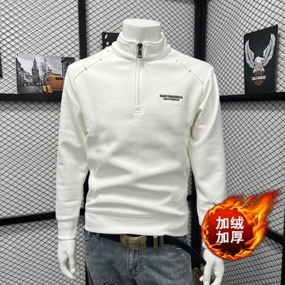半拉链卫衣男士秋冬休闲潮牌宽松上衣半高领男款套头打底衫加绒潮