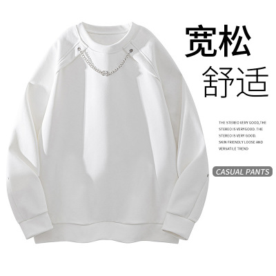 YANXU白色半高领德绒长袖t恤男士潮牌无帽卫衣宽松打底内搭秋衣