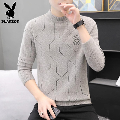 花花公子水貂绒毛衣男士半高领打底毛线衣春秋季新款修身针织衫男
